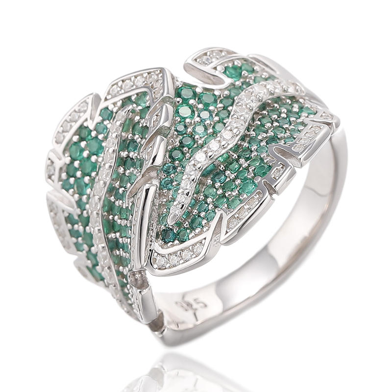 7.99Кольцо из серебра 925 пробы с родиевым покрытием и круглым зеленым нанокристаллом и белым кубическим цирконием
