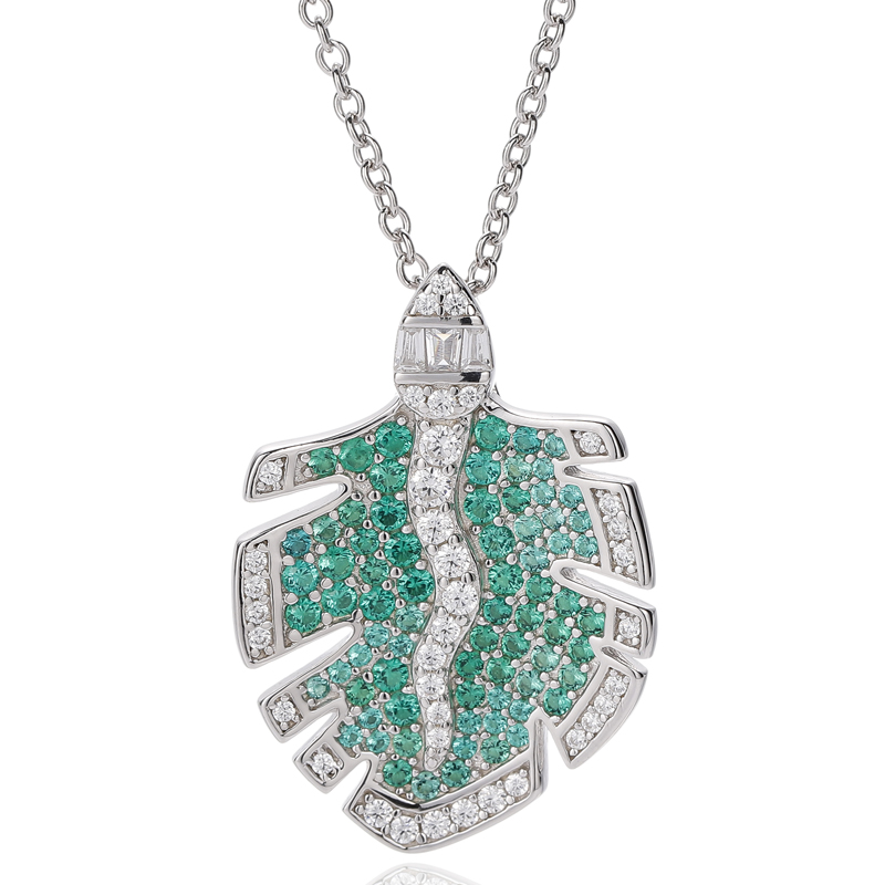 3.71Подвеска с круглым зеленым нано- и коническим белым кубическим цирконием из родированного серебра