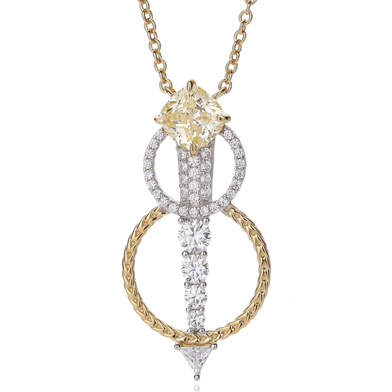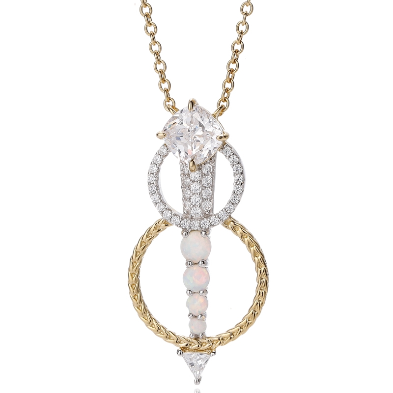 4.81Серебряный кулон с круглым опалом и белым кубическим цирконием в форме кушона с двухцветным покрытием