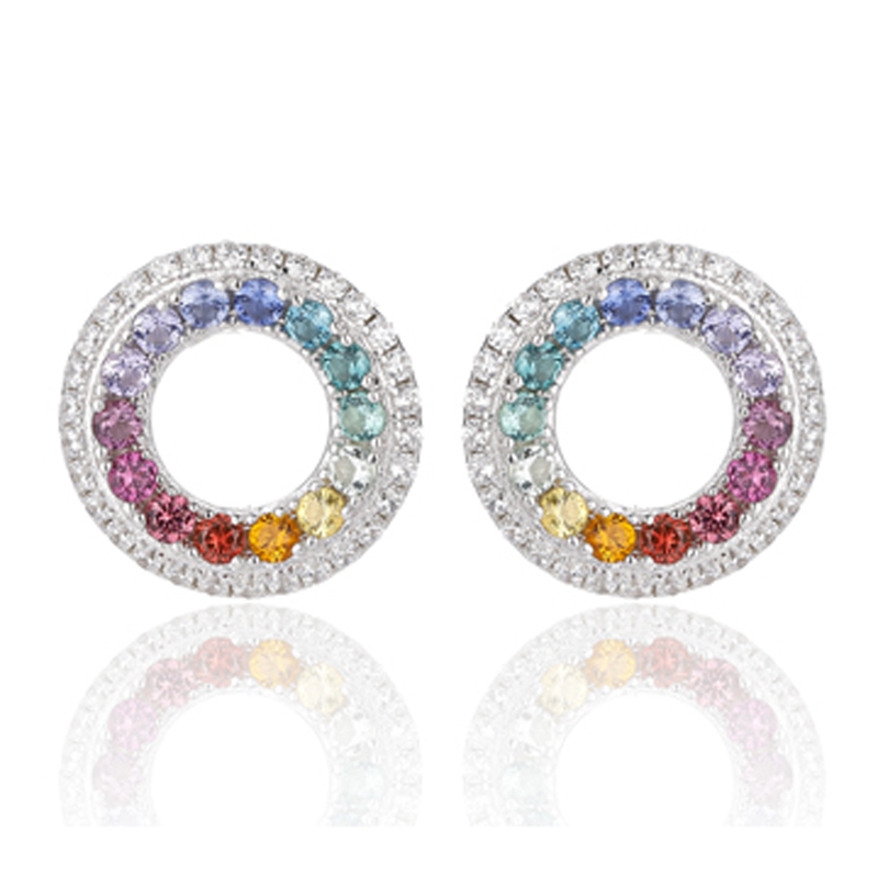 4.54Серьги из родированного серебра с круглыми радужными и белыми кубическими цирконами